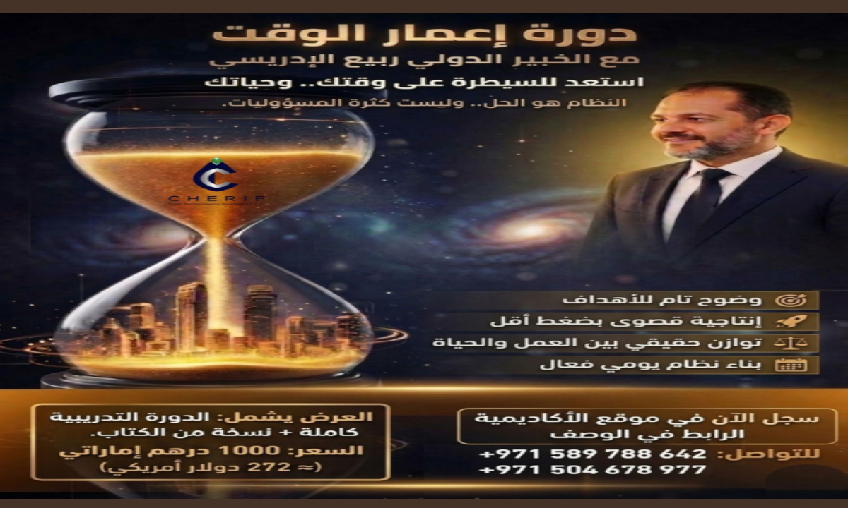 .استعد للسيطرة على وقتك وبناء حياة أكثر تنظيما ووضوحا مع دورة “إعمار الوقت” — الخبير ربيع الإدريسي📖